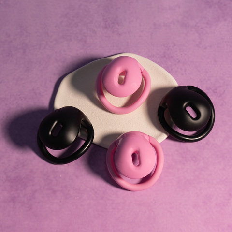 Розовое пластиковое маленькое мужское устройство целомудрия